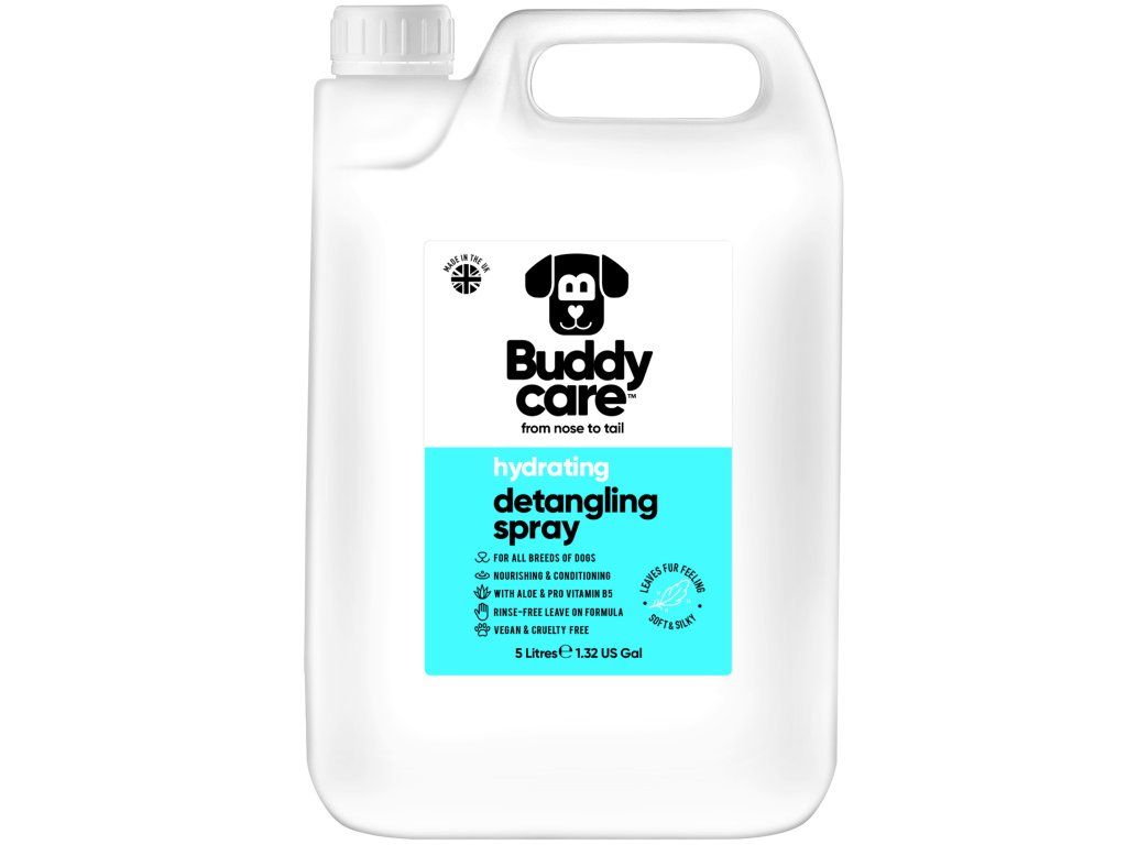 Buddycare Dog Detangling Spray má bezoplachové složení. Stačí pár střiků našeho vyživujícího a kondicionačního spreje a srst bude jemná jako pírko, zatímco aloe vera a provitamín B5 pomáhají srst zklidnit a chránit.